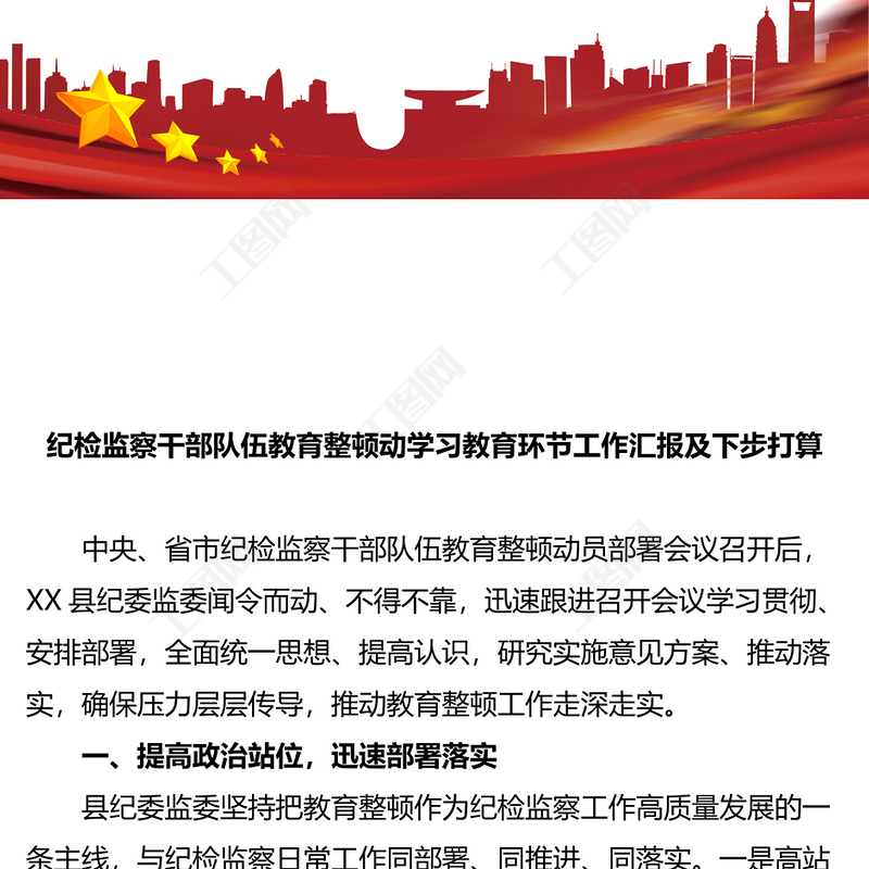 工圖網(wǎng)提供紀(jì)檢監(jiān)察干部隊(duì)伍教育整頓動(dòng)學(xué)習(xí)教育環(huán)節(jié)工作匯報(bào)及下步打算供會(huì)員免費(fèi)下載。更多精彩黨課PPT素材,盡在工圖網(wǎng)。