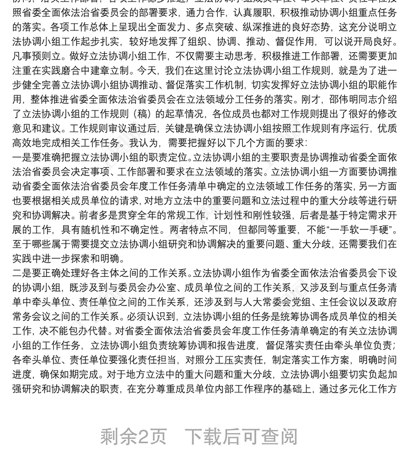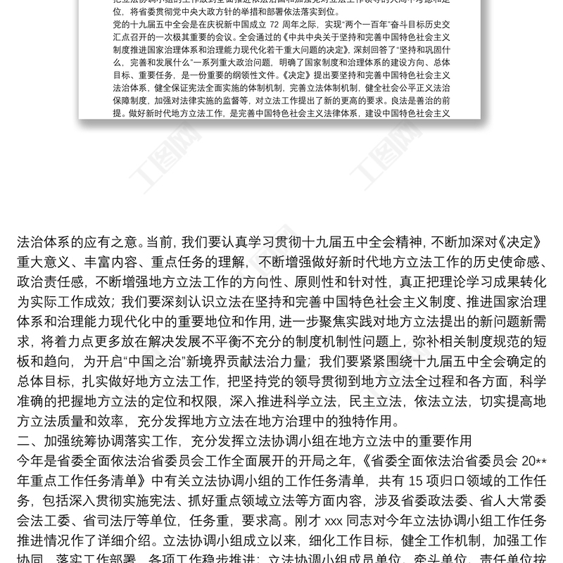在省委全面依法治省委員會(huì)立法協(xié)調(diào)小組第一次全體會(huì)議上的講話