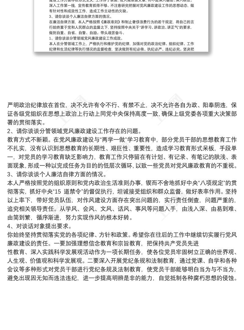 2022退休人員黨支部談心談話內(nèi)容記錄2022集體談心談話會議記錄內(nèi)容2022紀(jì)檢監(jiān)察干部談心談話內(nèi)容記錄2022訪惠聚談心談話會議記錄2021年全面從嚴(yán)治黨談話提醒記錄2022年集體談心談話會議記錄黨支部對會計談心談話內(nèi)容記錄20222021年組織生活會前談心談話情況記錄黨支部委員談心談話內(nèi)容記錄20222023工程建設(shè)廉政談話提醒記錄2023集體廉政談話表態(tài)記錄范文2023例行廉政談話內(nèi)容記錄2023廉政談話自律記錄表2023校長廉政談話內(nèi)容記錄2023廉政談話內(nèi)容記錄2023廉政談話誰來記錄整理