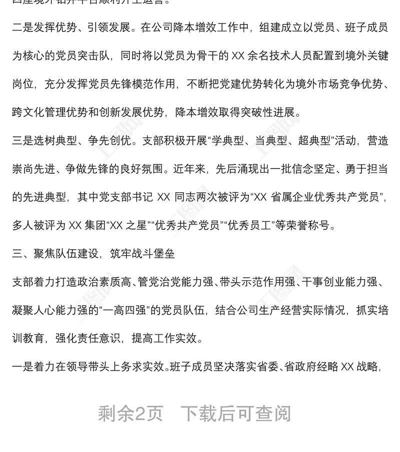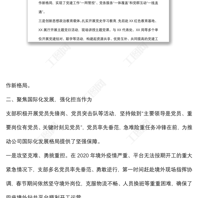 工圖網(wǎng)提供國(guó)企黨建經(jīng)驗(yàn)交流材料:“四個(gè)聚焦”引領(lǐng)企業(yè)高質(zhì)量發(fā)展供會(huì)員免費(fèi)下載。更多精彩黨課PPT素材,盡在工圖網(wǎng)。