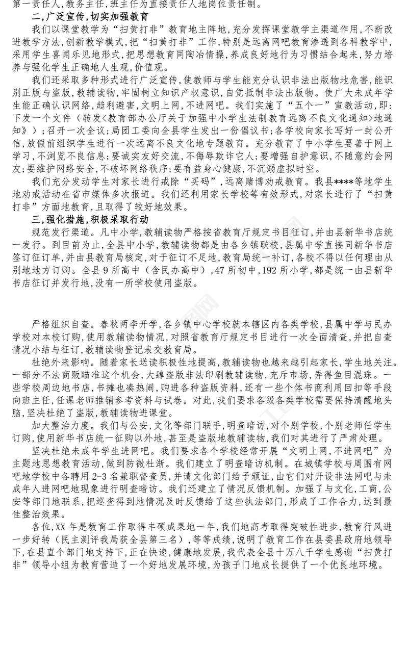 教育系統(tǒng)掃黃打非2022述職報(bào)告