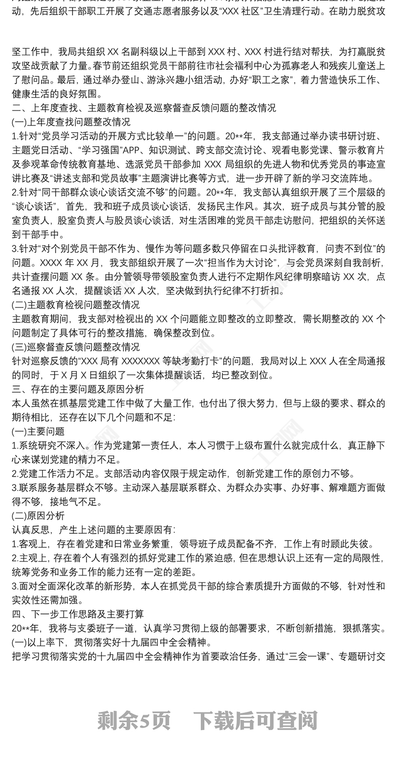 20xx年黨支部書記抓基層黨建工作情況述職報(bào)告