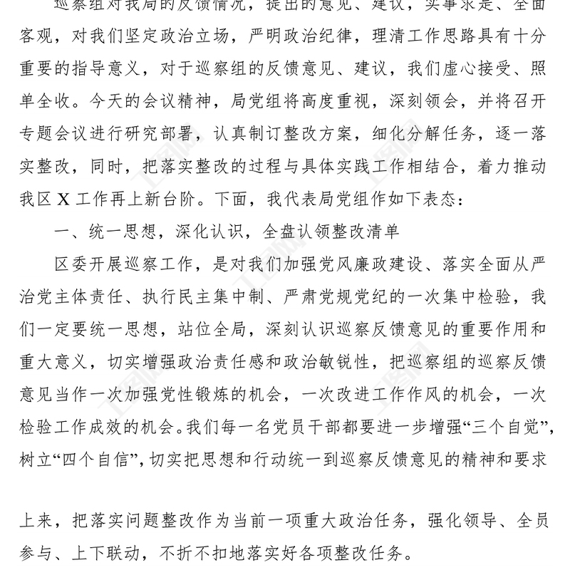 巡察工作反饋會上的整改表態(tài)發(fā)言 Array