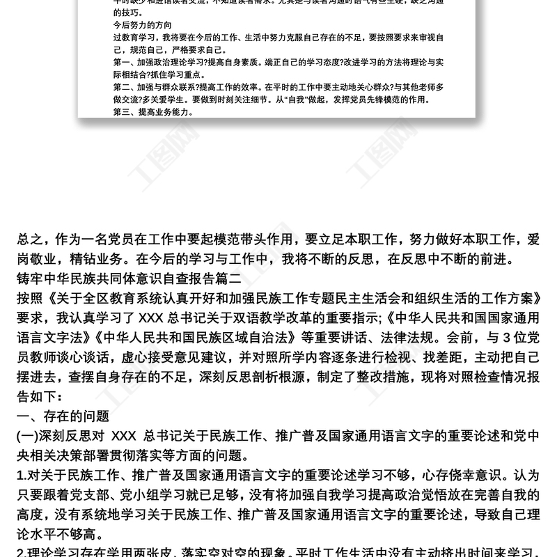 工圖網(wǎng)提供鑄牢中華民族共同體意識自查報(bào)告3篇供會員免費(fèi)下載。更多精彩黨課PPT素材,盡在工圖網(wǎng)。