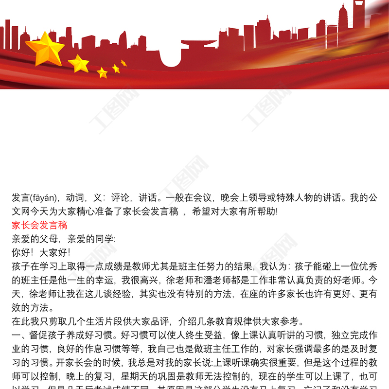工圖網(wǎng)提供家長會(huì)發(fā)言稿_家長會(huì)發(fā)言稿供會(huì)員免費(fèi)下載。更多精彩黨課PPT素材,盡在工圖網(wǎng)。