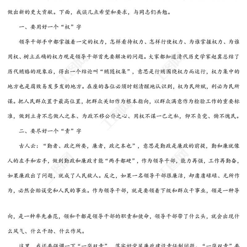2021年總經(jīng)理在新任職中層干部集體廉政談話會上的講話包含