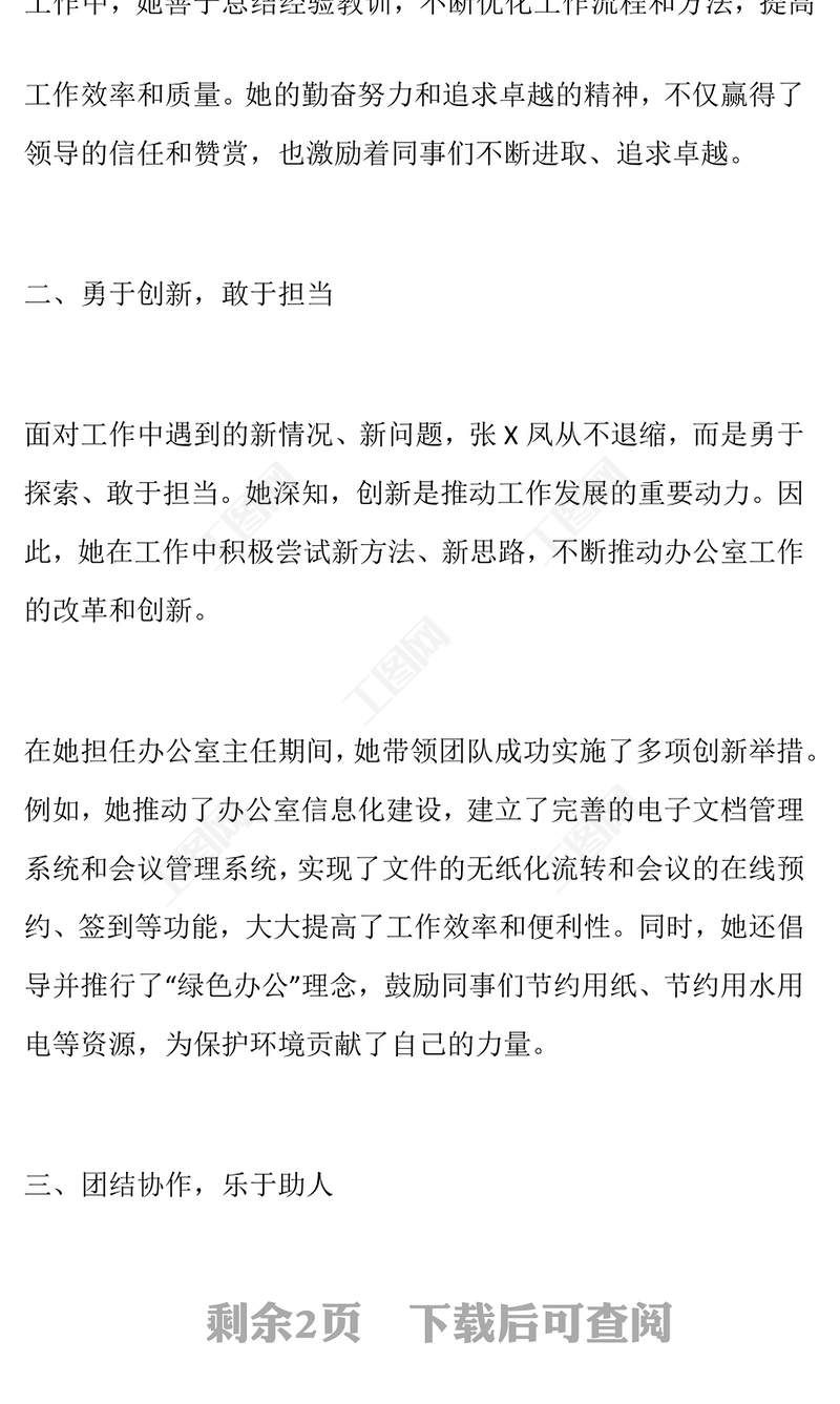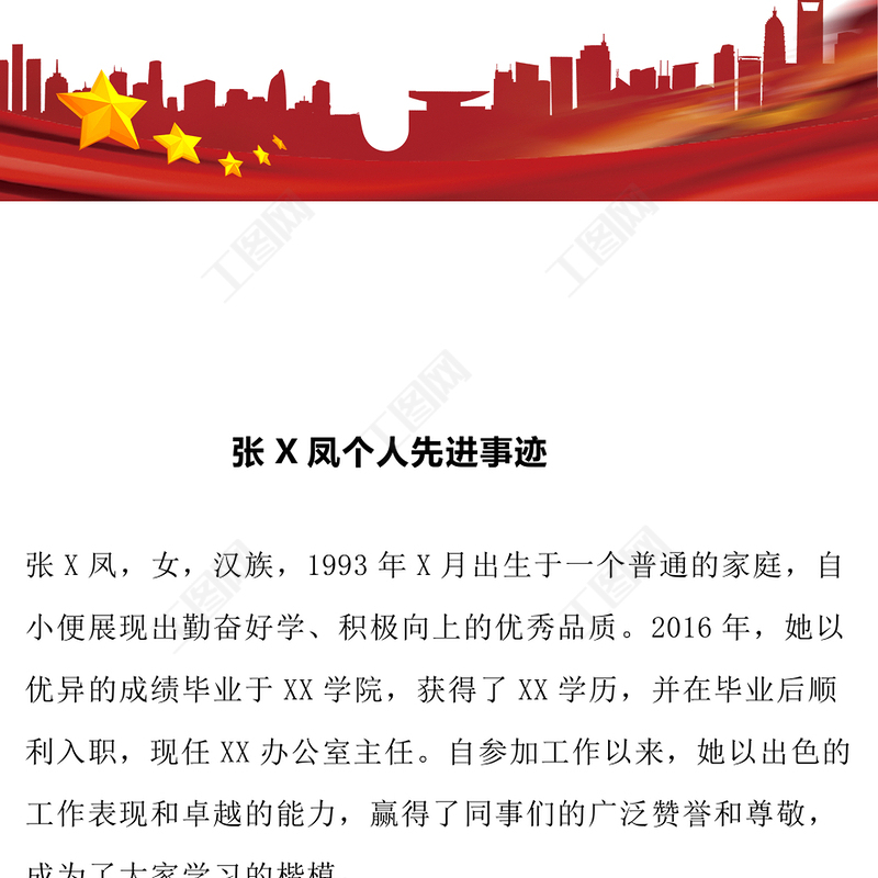 工圖網(wǎng)提供張X鳳個(gè)人先進(jìn)事跡范文供會(huì)員免費(fèi)下載。更多精彩黨課PPT素材,盡在工圖網(wǎng)。
