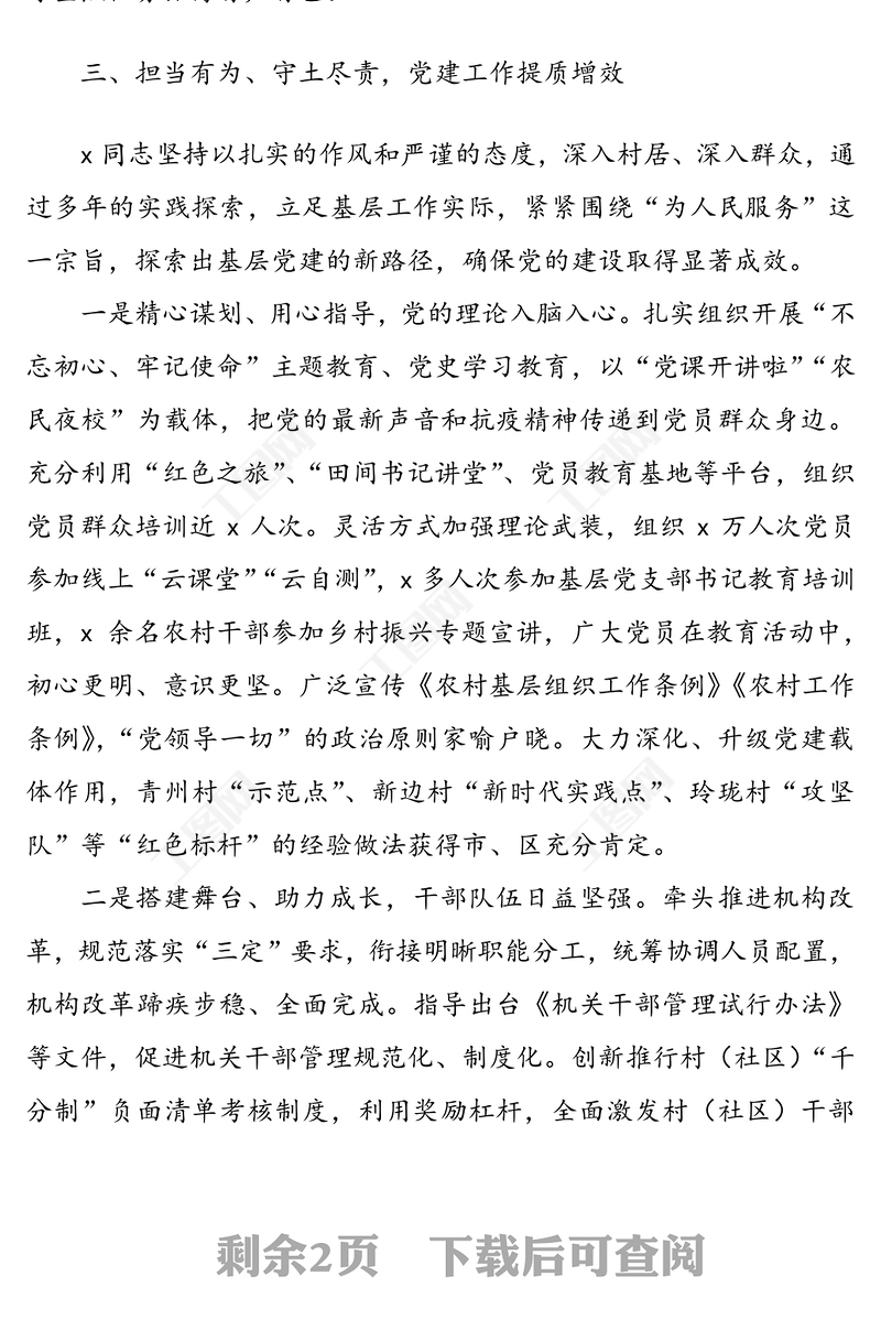 工圖網(wǎng)提供鄉(xiāng)鎮(zhèn)黨委副書(shū)記個(gè)人事跡材料范文供會(huì)員免費(fèi)下載。更多精彩黨課PPT素材,盡在工圖網(wǎng)。