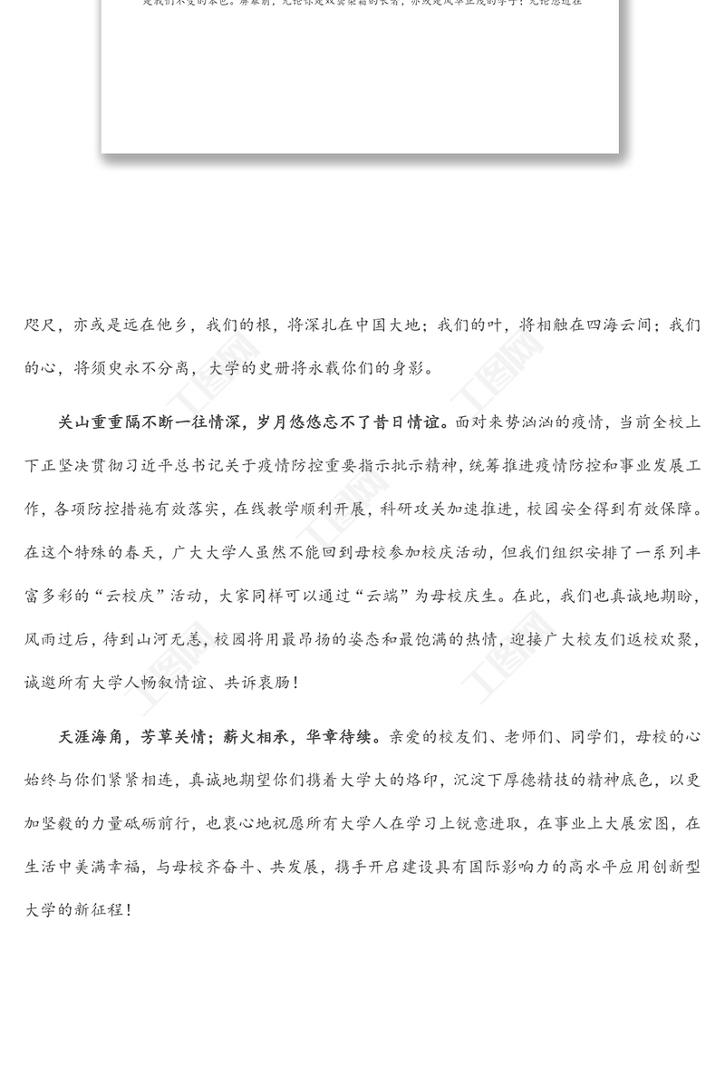 工圖網(wǎng)提供大學校長在校慶時的致辭供會員免費下載。更多精彩黨課PPT素材,盡在工圖網(wǎng)。