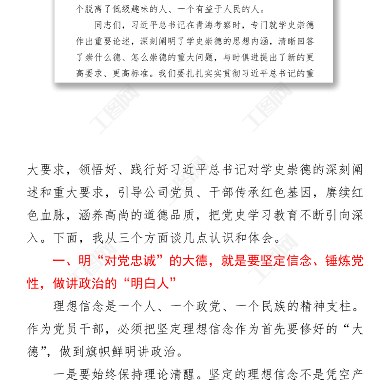 工圖網(wǎng)提供2021國企黨委書記黨史崇德研討交流發(fā)言材料y供會(huì)員免費(fèi)下載。更多精彩黨課PPT素材,盡在工圖網(wǎng)。