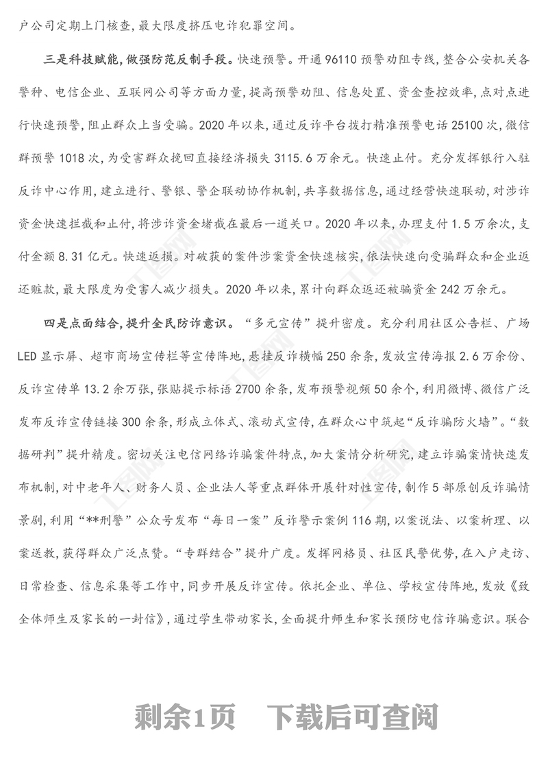 在全省整治電信網(wǎng)絡(luò)詐騙工作會(huì)上經(jīng)驗(yàn)交流發(fā)言