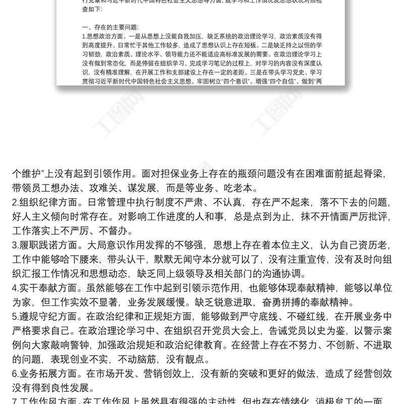 工圖網(wǎng)提供【黨史教育組織生活會對照檢查材料】黨史學(xué)習(xí)教育對照檢視整改發(fā)言材料6篇供會員免費(fèi)下載。更多精彩黨課PPT素材,盡在工圖網(wǎng)。