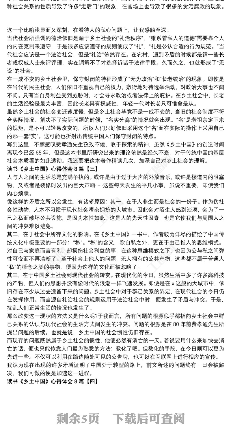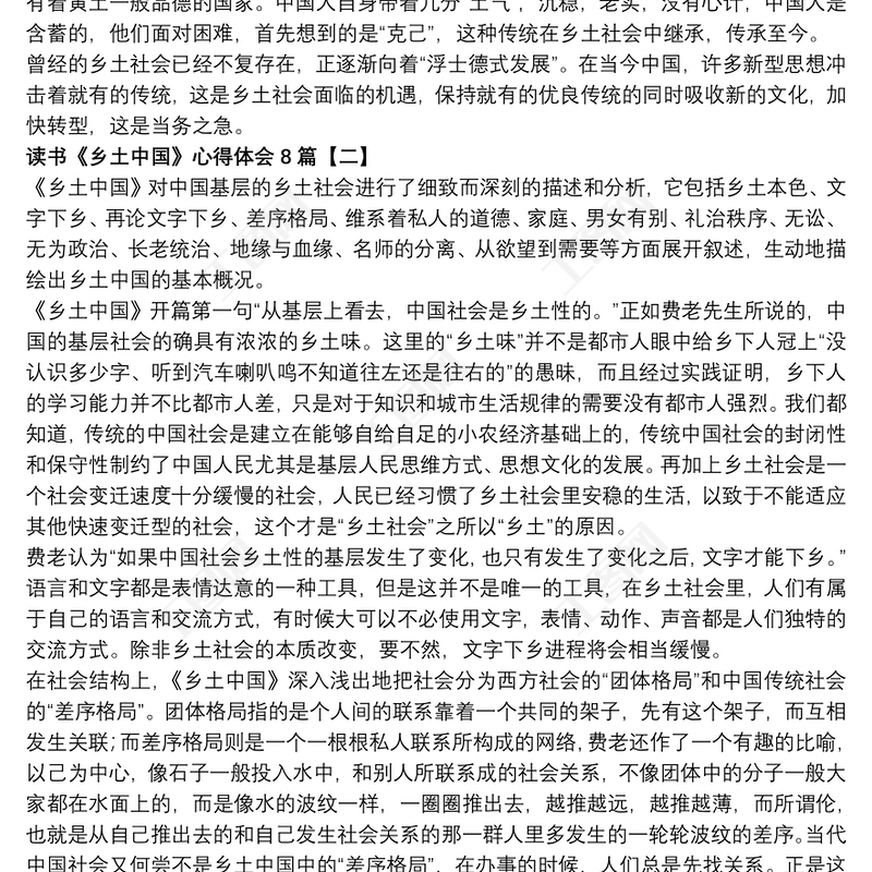 讀書《鄉(xiāng)土中國》心得體會8篇