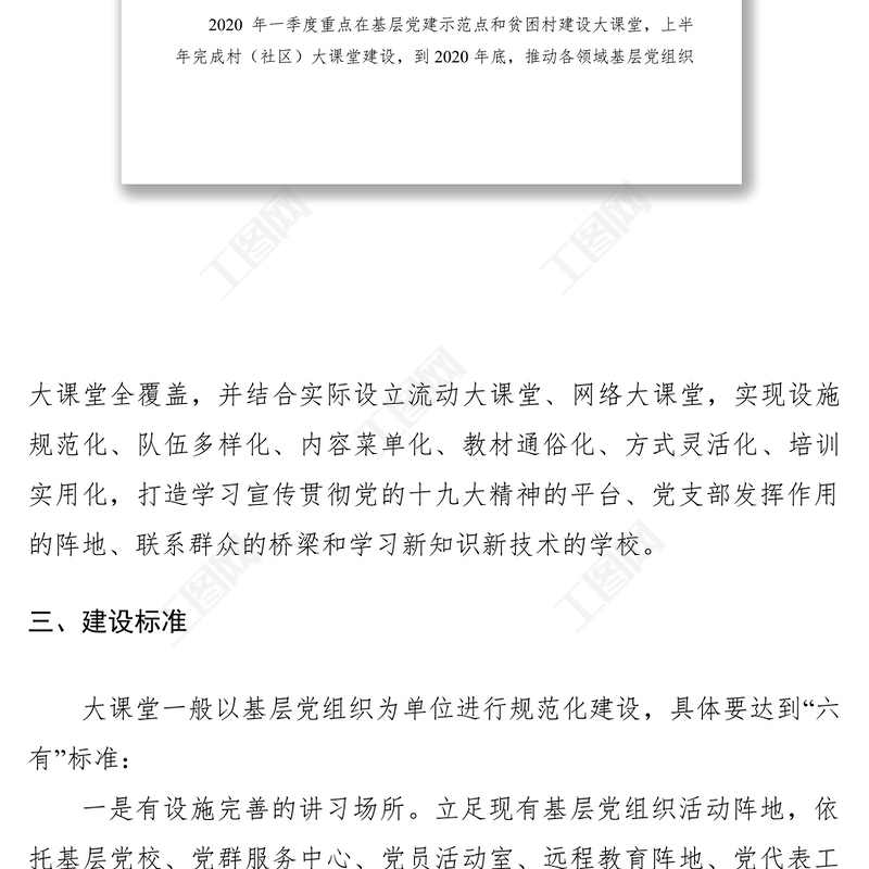 工圖網(wǎng)提供2021新時(shí)代黨建大課堂建設(shè)方案供會(huì)員免費(fèi)下載。更多精彩黨課PPT素材,盡在工圖網(wǎng)。