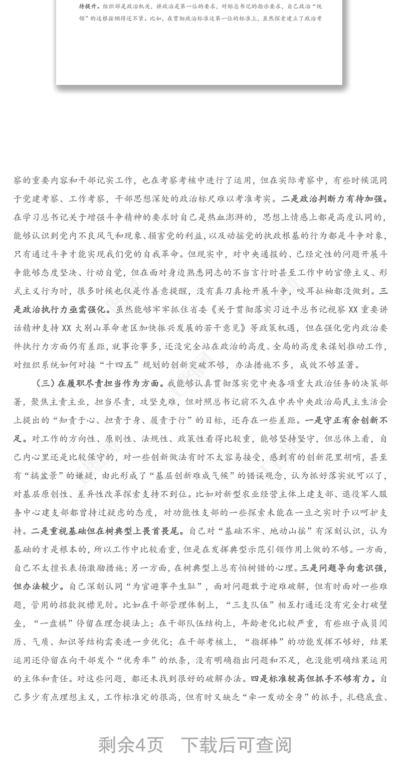 X組織部長(zhǎng)2020年度專題民主生活會(huì)個(gè)人對(duì)照檢查材料,對(duì)照檢查,公文 Array