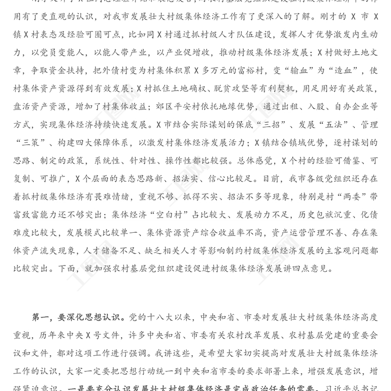在全市加強農村基層黨組織建設促進村級集體經濟發(fā)展推進會上的講話,鄉(xiāng)村振興戰(zhàn)略,公文范文 Array