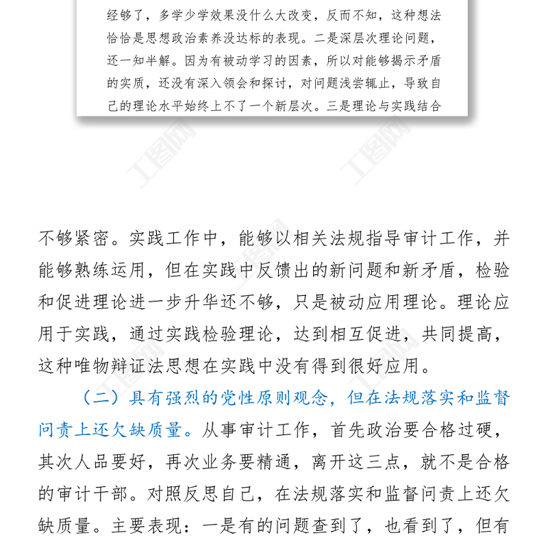 工圖網(wǎng)提供審計局黨員干部黨史學(xué)習(xí)教育專題組織生活會個人黨性分析材料供會員免費下載。更多精彩黨課PPT素材,盡在工圖網(wǎng)。