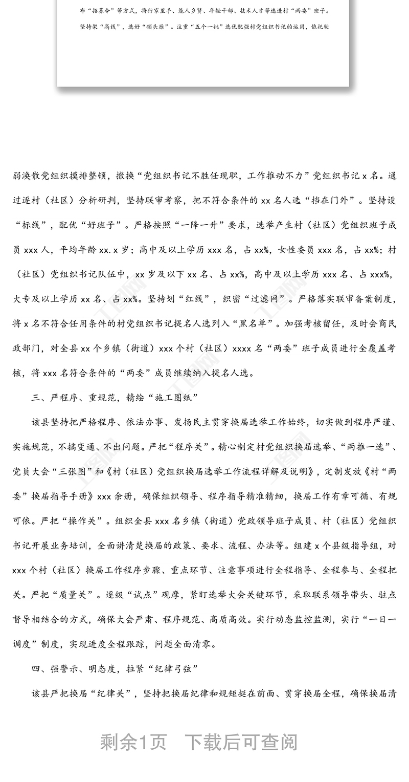 2021年村(社區(qū))黨組織換屆工作總結(jié)報(bào)告