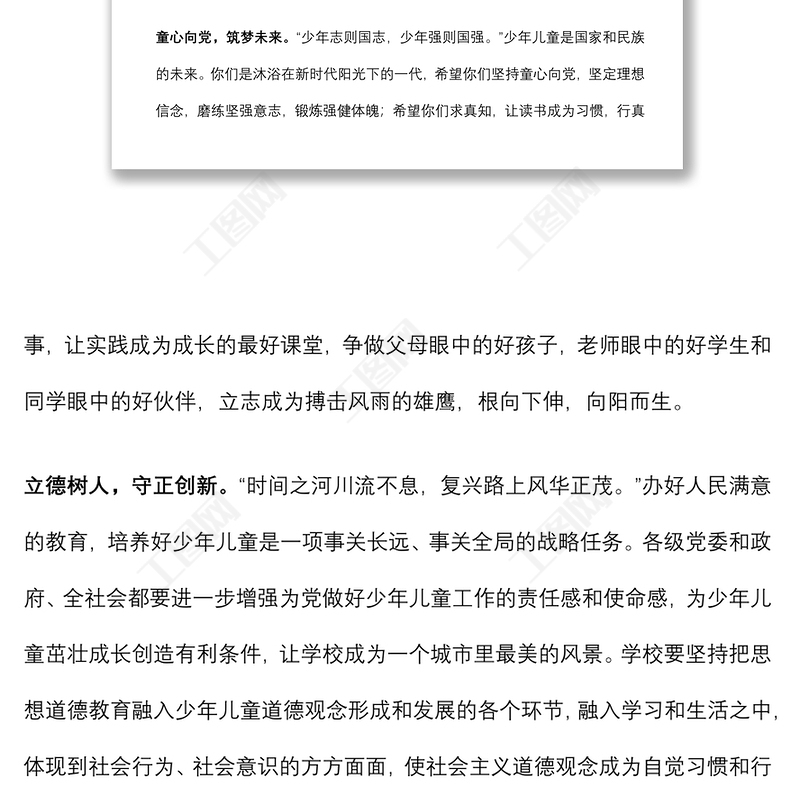 工圖網(wǎng)提供在“六一”兒童節(jié)慶祝大會上的致辭供會員免費(fèi)下載。更多精彩黨課PPT素材,盡在工圖網(wǎng)。