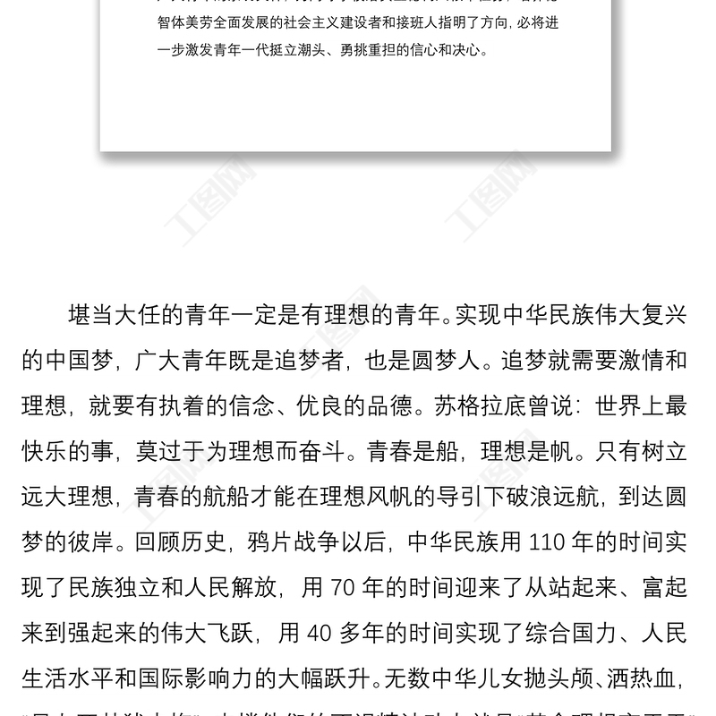 工圖網(wǎng)提供2021感想總結(jié):做有理想有本領(lǐng)有擔(dān)當(dāng)?shù)臅r代青年供會員免費下載。更多精彩黨課PPT素材,盡在工圖網(wǎng)。