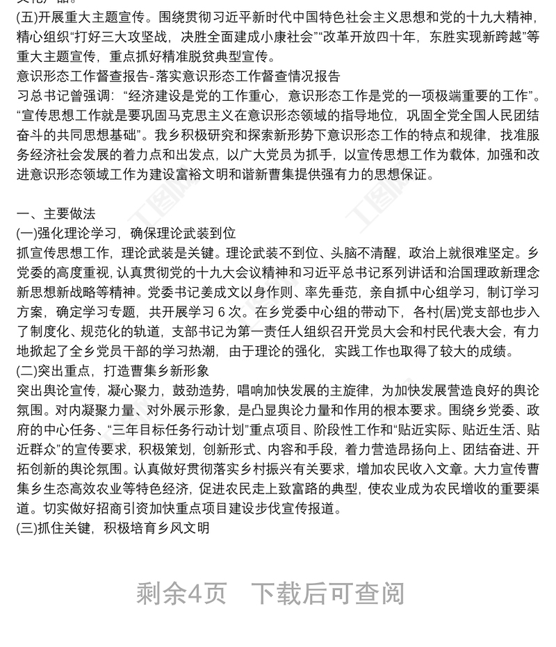 工圖網(wǎng)提供意識(shí)形態(tài)工作督查報(bào)告-落實(shí)意識(shí)形態(tài)工作督查情況報(bào)告三篇供會(huì)員免費(fèi)下載。更多精彩黨課PPT素材,盡在工圖網(wǎng)。