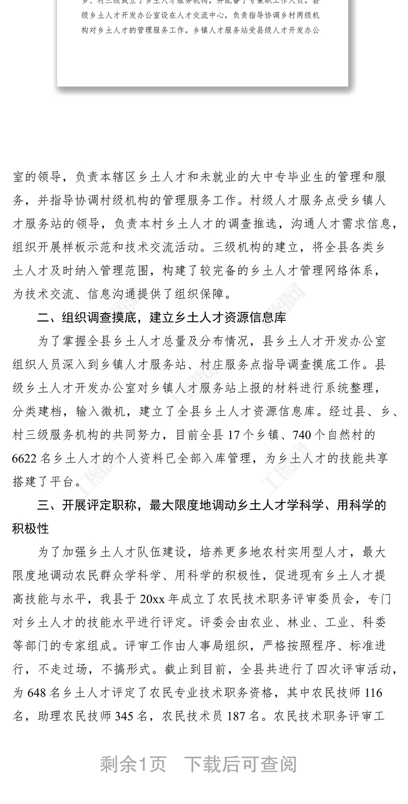 工圖網(wǎng)提供2021縣人事局加強(qiáng)鄉(xiāng)土人才管理經(jīng)驗(yàn)材料供會(huì)員免費(fèi)下載。更多精彩黨課PPT素材,盡在工圖網(wǎng)。
