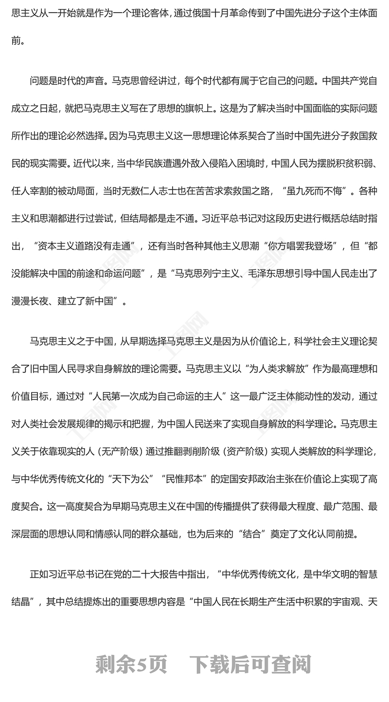 首頁 > WORD文檔 > 黨課講稿 > 2023馬克思主義中國化的契合·結(jié)合·融通邏輯意蘊(yùn)ppt黨政簡潔風(fēng)“兩個(gè)結(jié)合”視域下的馬克思主義中國化理論廣大黨員學(xué)習(xí)培訓(xùn)黨課課件(講稿).DOCX 【圖片、文字、動(dòng)畫均可編輯】