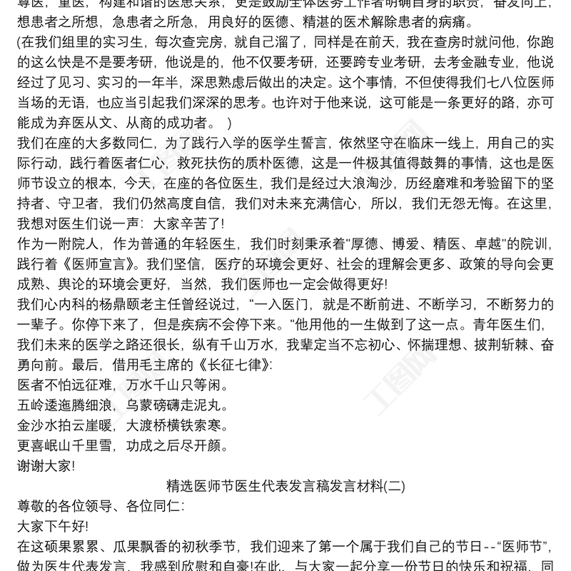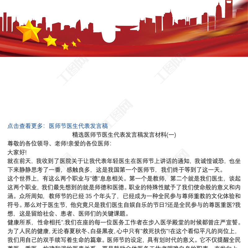 工圖網(wǎng)提供精選醫(yī)師節(jié)醫(yī)生代表發(fā)言稿發(fā)言材料三篇供會員免費下載。更多精彩黨課PPT素材,盡在工圖網(wǎng)。