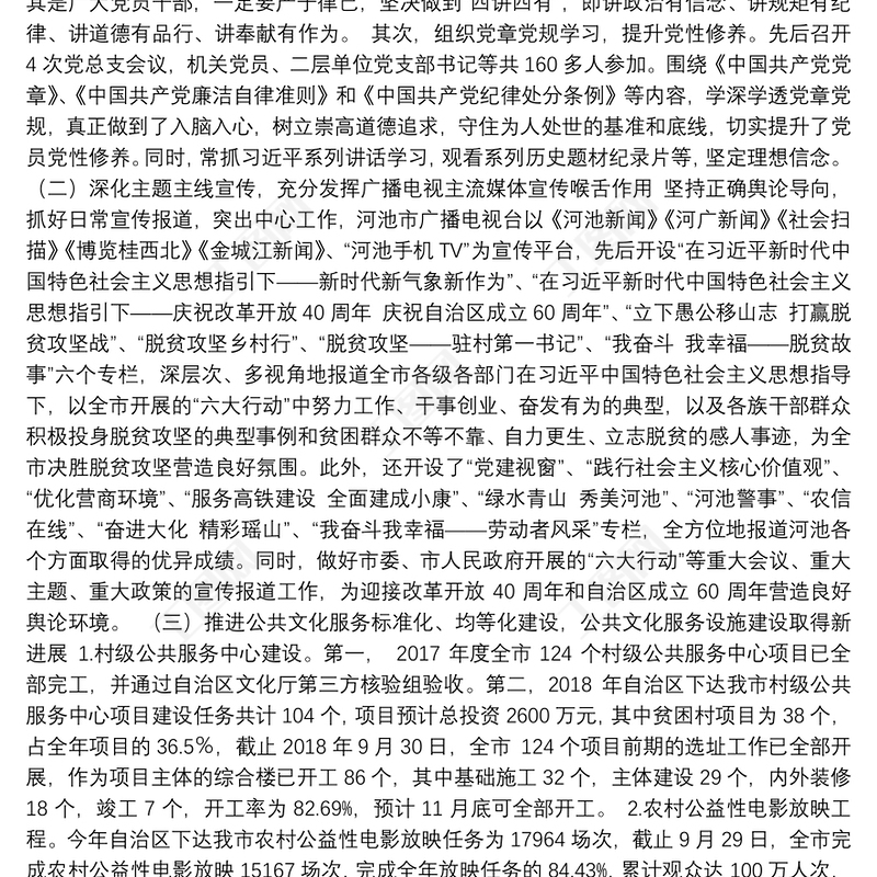 河池市文化廣電新聞出版體育局2018年工作進展情況匯報