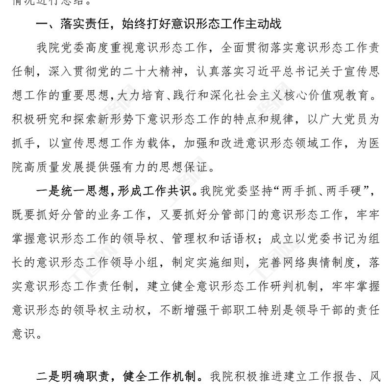 2021網(wǎng)絡(luò)意識形態(tài)工作分析研判報(bào)告2021建黨100周年意識形態(tài)領(lǐng)域風(fēng)險(xiǎn)排查化解工作報(bào)告衛(wèi)健委疫情防控2022年第二季度意識形態(tài)領(lǐng)域工作情況報(bào)告2024意識形態(tài)工作分析研判報(bào)告2023醫(yī)院意識形態(tài)自查工作報(bào)告2023醫(yī)院意識形態(tài)工作表態(tài)發(fā)言2023意識形態(tài)工作形勢評估報(bào)告2023意識形態(tài)防范化解工作報(bào)告2022年醫(yī)院意識形態(tài)工作提升年專項(xiàng)行動(dòng)問題清單2023意識形態(tài)檢查整改工作報(bào)告2023意識形態(tài)風(fēng)險(xiǎn)隱患工作報(bào)告2023意識形態(tài)教育督導(dǎo)工作報(bào)告醫(yī)院意識形態(tài)報(bào)告2024