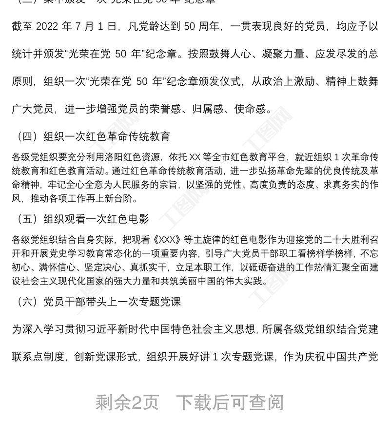 工圖網(wǎng)提供關(guān)于開(kāi)展慶祝建黨101周年系列活動(dòng)的實(shí)施方案供會(huì)員免費(fèi)下載。更多精彩黨課PPT素材,盡在工圖網(wǎng)。