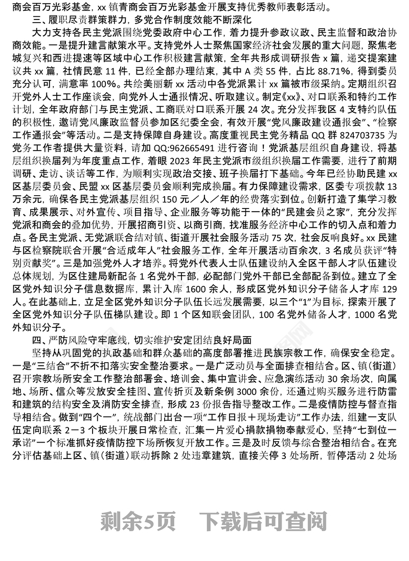 區(qū)委統(tǒng)戰(zhàn)部2022年工作總結(jié)及2023年工作謀劃