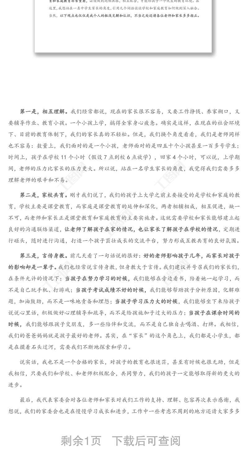 家委會代表在家長會上的發(fā)言,發(fā)言材料,公文范文 Array