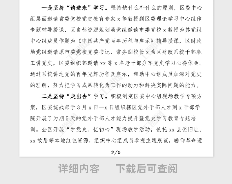 區(qū)委開(kāi)展黨史學(xué)習(xí)教育經(jīng)驗(yàn)材料范文工作總結(jié)匯報(bào)報(bào)告 Array