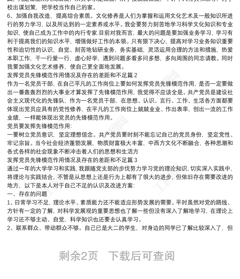 工圖網(wǎng)提供發(fā)揮黨員先鋒模范作用情況及存在的差距和不足3篇供會員免費(fèi)下載。更多精彩黨課PPT素材,盡在工圖網(wǎng)。
