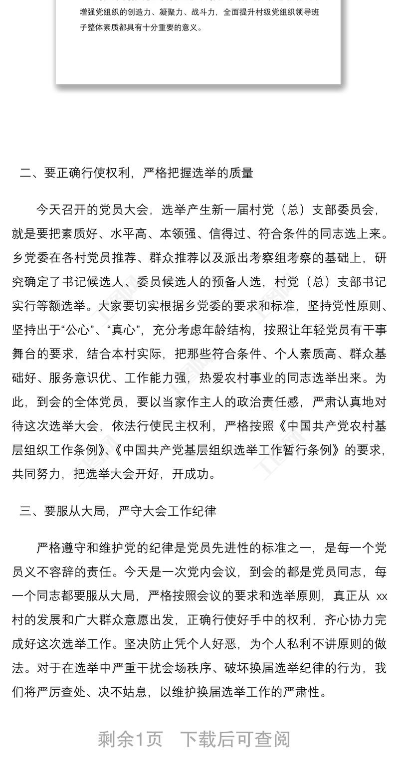 村黨支部換屆選舉工作指導(dǎo)組組長在村黨組織換屆選舉黨員大會(huì)上的講話包含