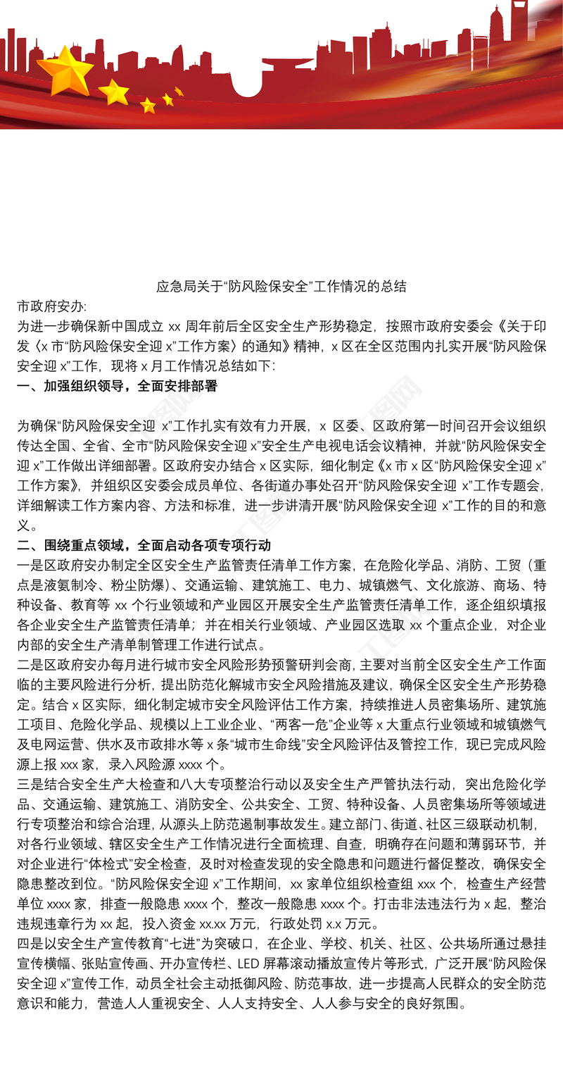 應(yīng)急局關(guān)于“防風(fēng)險(xiǎn)保安全”工作情況的總結(jié)