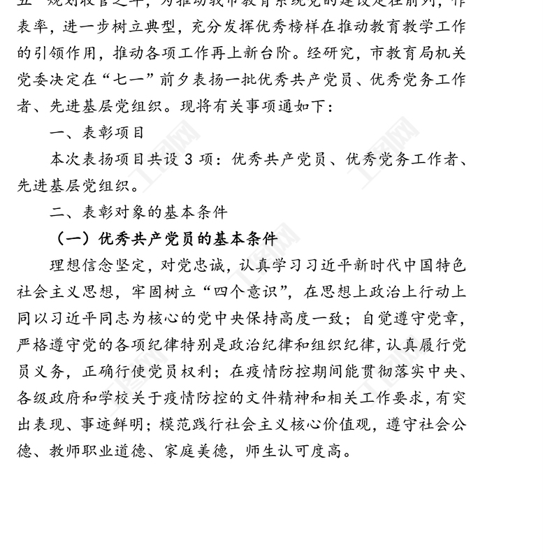 > 公文范文 > 關(guān)于評(píng)選2020年先進(jìn)基層黨組織優(yōu)秀黨務(wù)工作者優(yōu)秀共產(chǎn)黨員的通知.DOCX 【圖片、文字、動(dòng)畫均可編輯】
