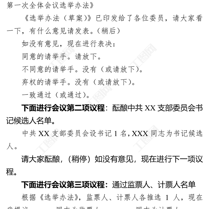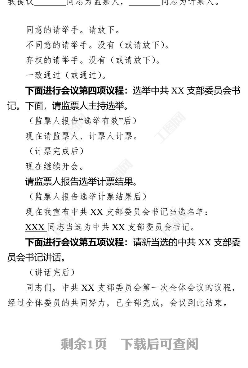 中共XX支部委員會第一次全體會議主持詞主持人XXX