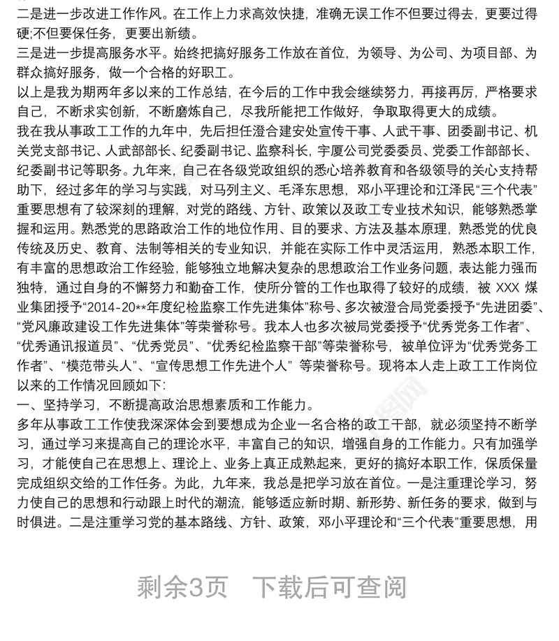 2021政工師業(yè)務工作報告 政工師業(yè)務工作總結