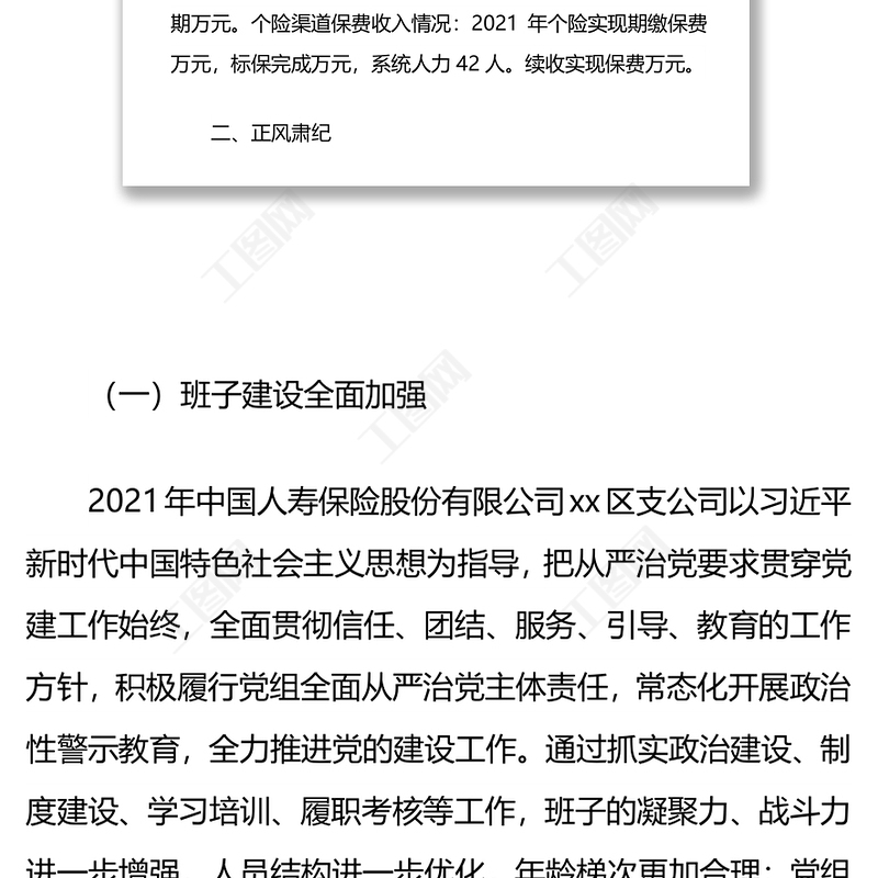 工圖網(wǎng)提供中國人壽保險(xiǎn)股份有限公司xx區(qū)支公司2021年度工作情況總結(jié)供會(huì)員免費(fèi)下載。更多精彩黨課PPT素材,盡在工圖網(wǎng)。