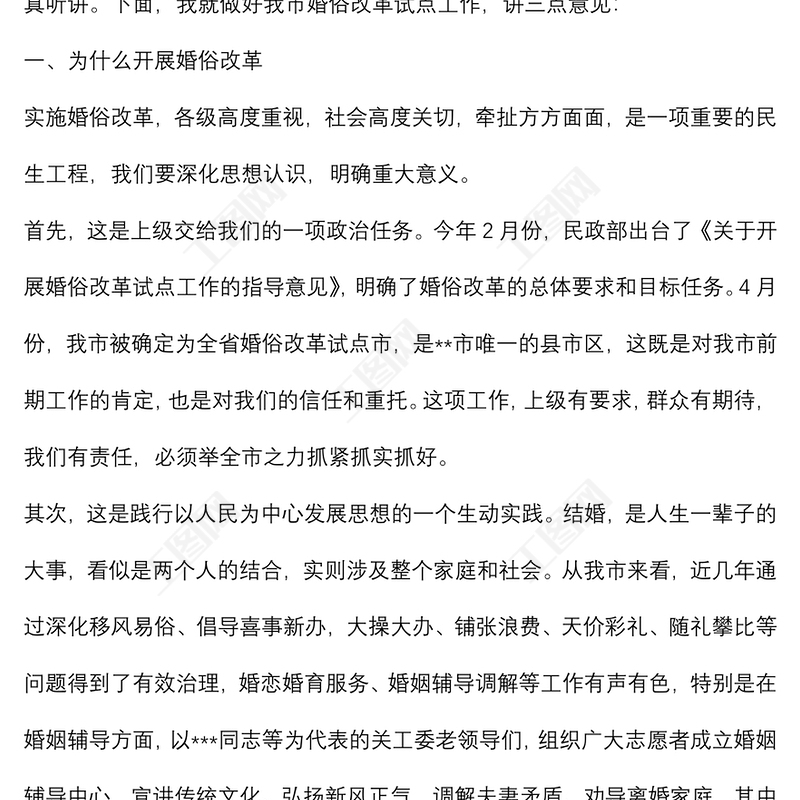 > 領(lǐng)導(dǎo)講話 > 在全市婚俗改革試點(diǎn)工作動(dòng)員會(huì)議上的講話.DOCX 【圖片、文字、動(dòng)畫(huà)均可編輯】