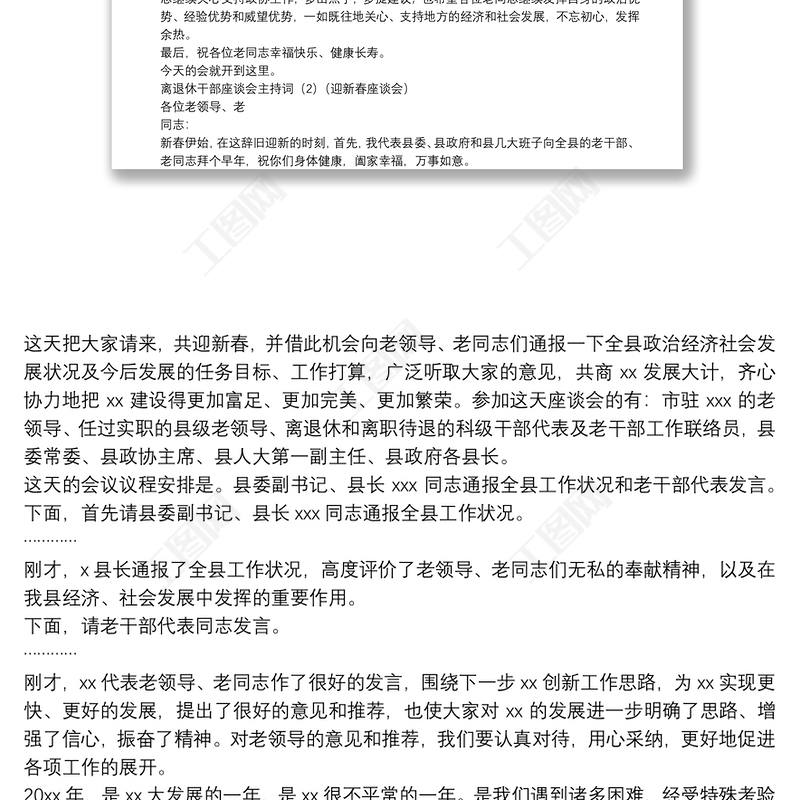 工圖網(wǎng)提供老干部座談會(huì)主持詞供會(huì)員免費(fèi)下載。更多精彩黨課PPT素材,盡在工圖網(wǎng)。