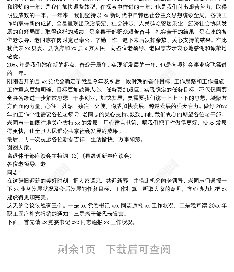 老干部座談會(huì)主持詞
