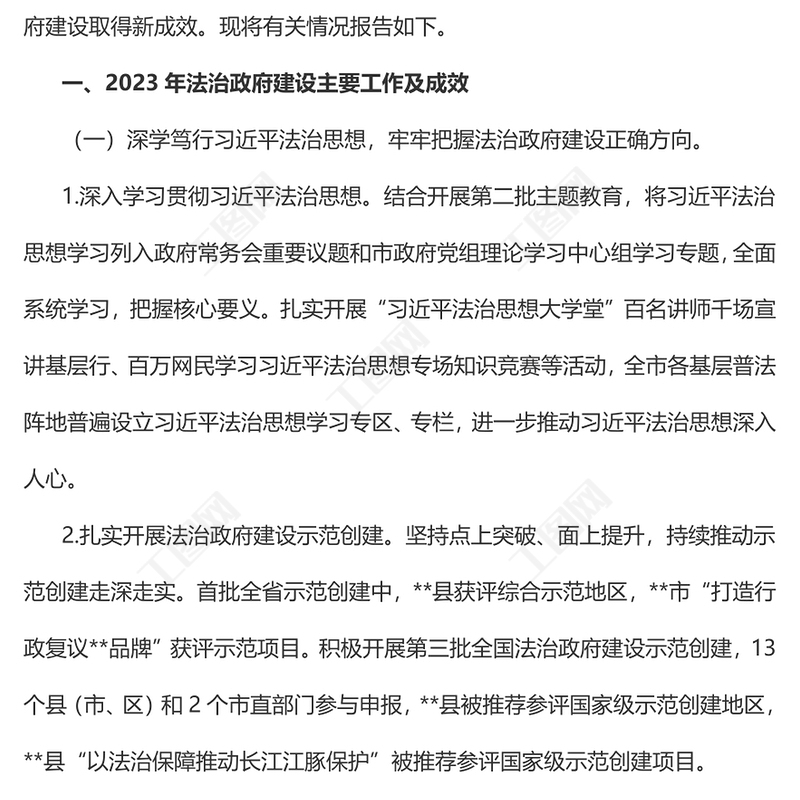 工圖網(wǎng)提供2023年市法治政府建設(shè)情況的報告PPT紅色簡潔機(jī)關(guān)單位年終總結(jié)模板(講稿)供會員免費(fèi)下載。更多精彩黨課PPT素材,盡在工圖網(wǎng)。