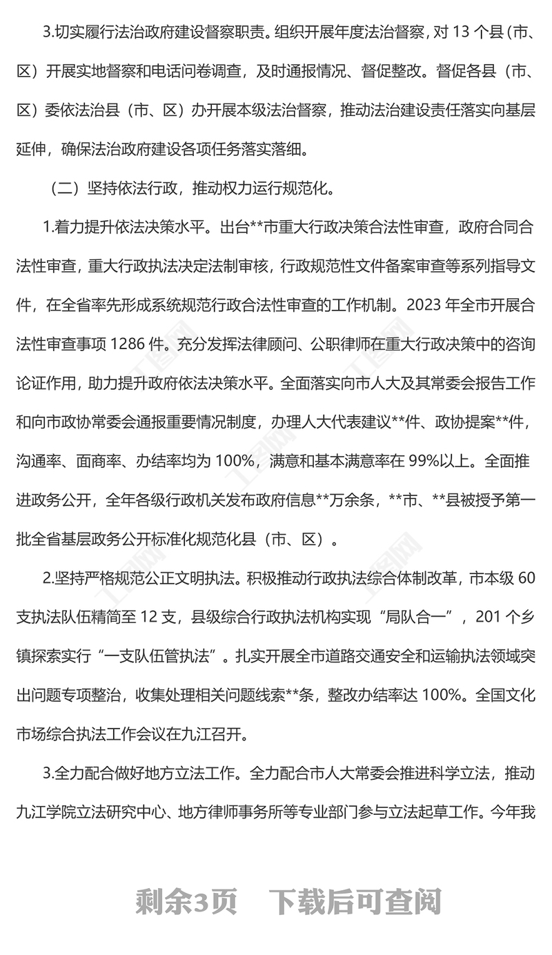黨課講稿 > 2023年市法治政府建設(shè)情況的報告PPT紅色簡潔機(jī)關(guān)單位年終總結(jié)模板(講稿).DOCX