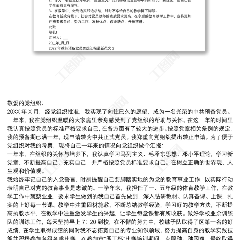 工圖網(wǎng)提供2022年教師預(yù)備黨員思想?yún)R報最新范文四篇供會員免費下載。更多精彩黨課PPT素材,盡在工圖網(wǎng)。