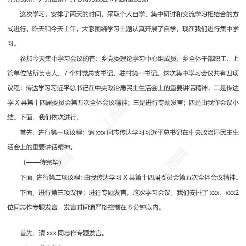 工圖網(wǎng)提供在鄉(xiāng)黨委理論學習中心組2023年第一次學習時的主持講話供會員免費下載。更多精彩黨課PPT素材,盡在工圖網(wǎng)。