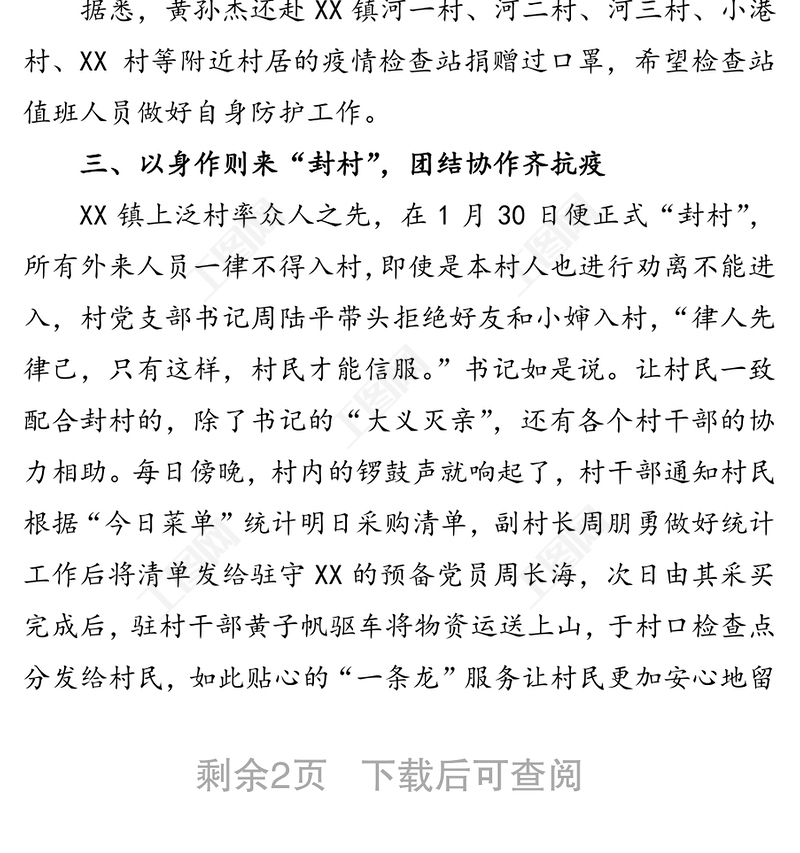 工圖網(wǎng)提供萬眾一心迎挑戰(zhàn)眾志成城戰(zhàn)疫情XX鎮(zhèn)防疫一線暖心事跡先進事跡材料供會員免費下載。更多精彩黨課PPT素材,盡在工圖網(wǎng)。