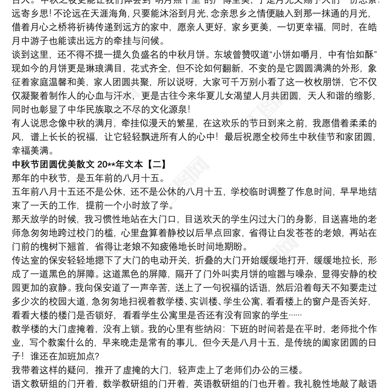 工圖網(wǎng)提供中秋節(jié)團圓優(yōu)美散文20xx年文本供會員免費下載。更多精彩黨課PPT素材,盡在工圖網(wǎng)。